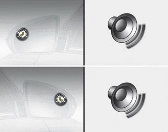 When this alert is activated, the warning light on the outside rearview mirror will also blink.