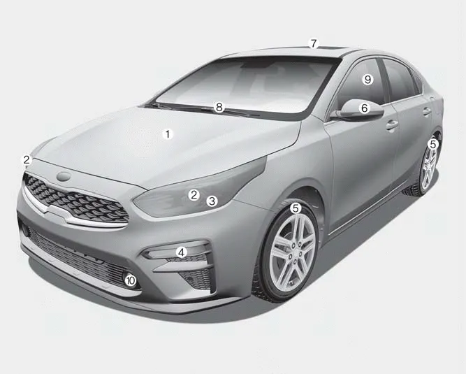1. Inside door handle 2. Outside rearview mirror control 3. Outside rearview mirror folding 4. Central door lock switch 5. Power window switch 6.