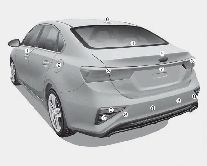 Rear turn signal lamp bulb replacement If the rear turn signal lamp (1) does not operate, have the vehicle checked by an authorized Kia dealer. Back up lamp bulb replacement If the back up lamp (1) does not operate, have the vehicle checked by an authorized Kia dealer.