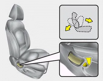 The front seat can be adjusted by using the control switch located on the outside of the seat cushion. Before driving, adjust the seat to the proper position so as to easily control the steering wheel, pedals and switches on the instrument panel.