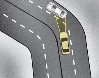 The FCA performance may be limited while driving on a curve. The FCA may not recognize the vehicle in front even if in the same lane. It may produce the warning message and the warning alarm prematurely, or it may not produce the warning message or the warning alarm at all. When driving on a curve, exercise caution, maintain a safe braking distance, and if necessary, depress the brake pedal to reduce your driving speed in order to maintain a safe distance.