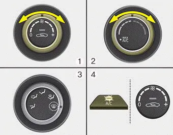 4. The outside (fresh) air and air conditioning will be selected automatically.
