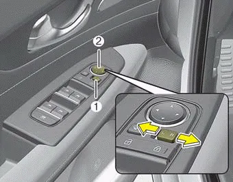 If you press the outside mirror folding button (1) for 5 seconds or more, the function will turn On or Off. When you turn on the function, a warning sound will be heard once; when you turn off the function, the warning sound will be heard twice.