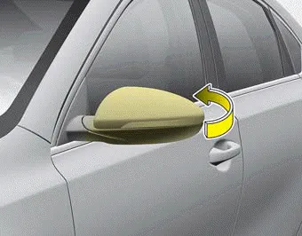 To fold outside rearview mirror, grasp the housing of the mirror and then fold it toward the rear of the vehicle.