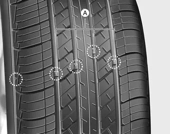 If the tire is worn evenly, a tread wear Indicator (A) will appear as a solid band across the tread. This shows there is less than 1.6 mm (1/16 inch) of tread left on the tire. Replace the tire when this happens.