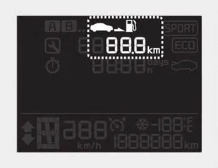 • The distance to empty is the estimated distance the vehicle can be driven with the remaining fuel.
