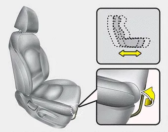 The front seat can be adjusted by using the control switch located on the outside of the seat cushion. Before driving, adjust the seat to the proper position so as to easily control the steering wheel, pedals and switches on the instrument panel.