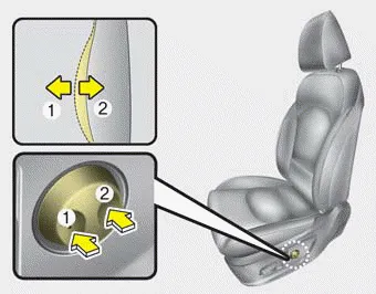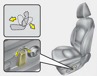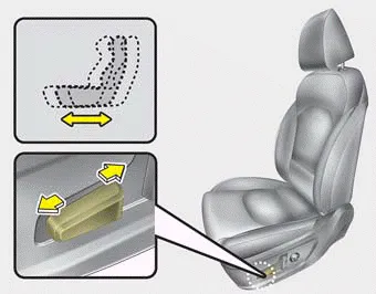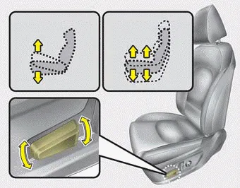 The front seat can be adjusted by using the control switch located on the outside of the seat cushion. Before driving, adjust the seat to the proper position so as to easily control the steering wheel, pedals and switches on the instrument panel.