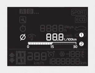 • This mode displays the instant fuel economy during the last few seconds when the vehicle speed is more than 10km/h (6.2 MPH).