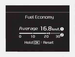 To clear the average fuel economy manually, press the RESET or OK button on the steering wheel for more than 1 second when the average fuel economy is displayed.
