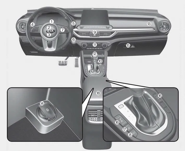 ■ Nu 2.0L MPI Engine (Gasoline) ■ Gamma 1.6L T-GDI Engine (Gasoline) 1. Engine coolant reservoir 2. Engine oil filler cap 3. Brake/clutch fluid reservoir 4.