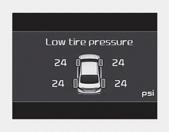 You can check the tire pressure in the information mode on the cluster. - Refer to “User settings mode” in chapter 4. Tire pressure is displayed 1~2 minutes after driving.