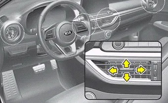 The outlet vents can be opened or closed separately turning the knob right or left. Also, you can adjust the direction of air delivery from these vents by moving the knob in any direction.