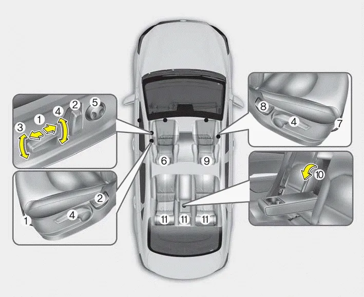 Use extreme caution when picking up small objects trapped under the seats or between the seat and the center console. Your hands might be cut or injured by the sharp edges of the seats mechanism.