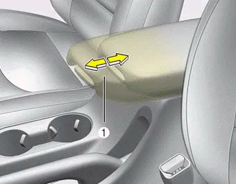 Do not grab the front portion of the armrest (1) when moving the armrest rearward. It may pinch your fingers.