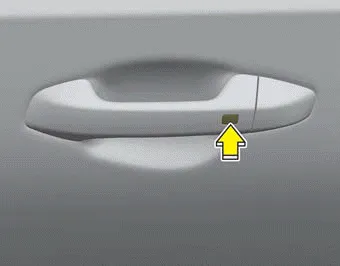 Pressing the button in the front passenger's outside door handle with all doors closed and locked, unlocks all the doors. The hazard warning lights will blink and the chime will sound twice to indicate that all doors are unlocked. The button will only operate when the smart key is within 0.7~1 m (28~40 in.) from the outside door handle.