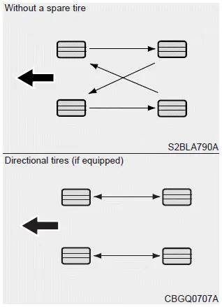 To equalize tread wear, it is recommended that the tires be rotated every 12,000 km (7,500 miles) or sooner if irregular wear develops.