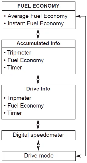 Tripmeter (1) The tripmeter is the total driving distance since the last tripmeter reset. - Distance range : 0 ~ 1599999 km or 0 ~ 999999 mi.