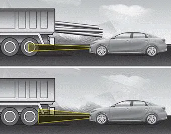 In this situation you must maintain a safe braking distance, and if necessary, depress the brake pedal to reduce your driving speed in order to maintain a safe distance.